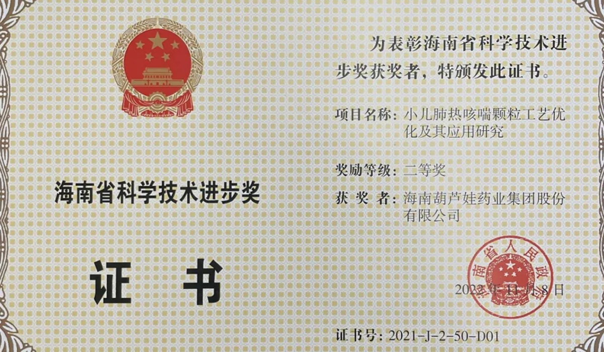 YP街机电子药业集团申报的专利“克咳片及其制备方法”荣获 第四届海南省专利奖金奖