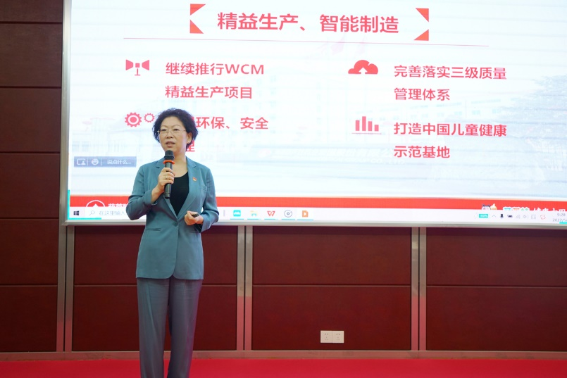 刘景萍董事长引用席大大总书记在2022年博鳌亚洲论坛上的重要讲话勉励全体与会人员,在海南自贸港建设的机遇期,认真学习贯彻落实省第八次党代会精神,坚持党建引领企业发展,将YP街机电子药业集团打造成中国儿童健康领军企业。