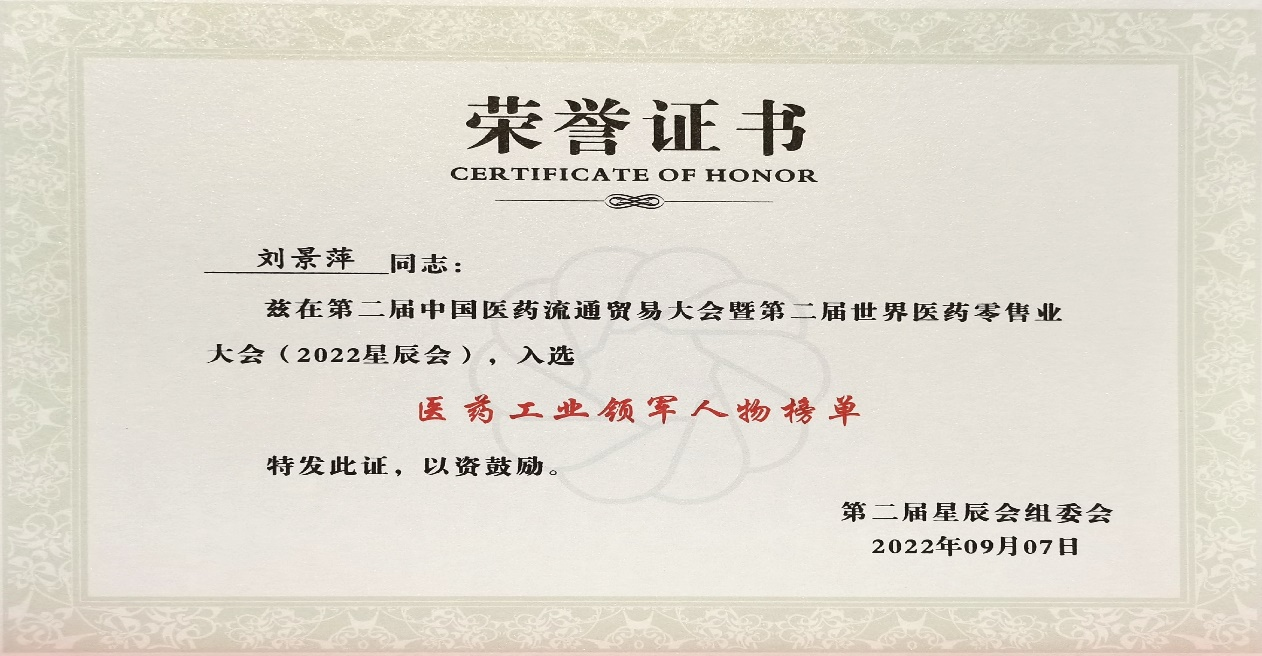 本次星辰会期间,YP街机电子斩获颇丰,获得多项行业奖项及荣誉。在开幕式上,刘景萍董事长荣获“医药工业领军人物”称号。