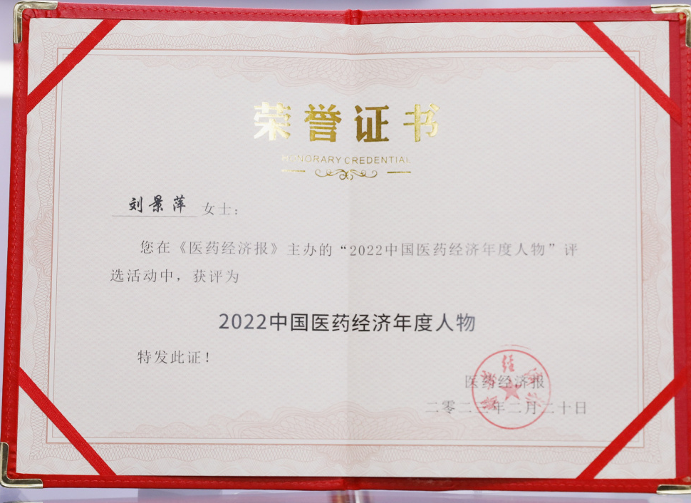 YP街机电子药业集团董事长刘景萍当选“2022中国医药经济年度人物”